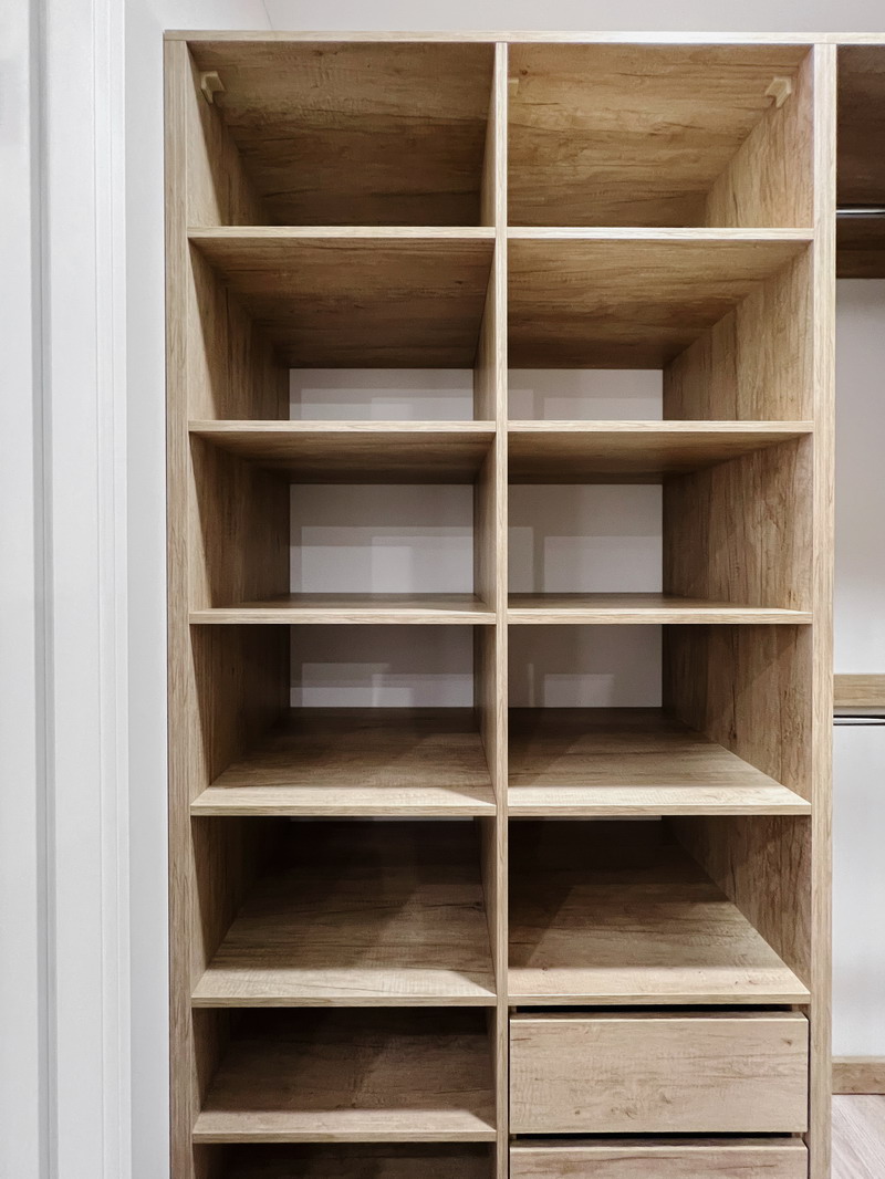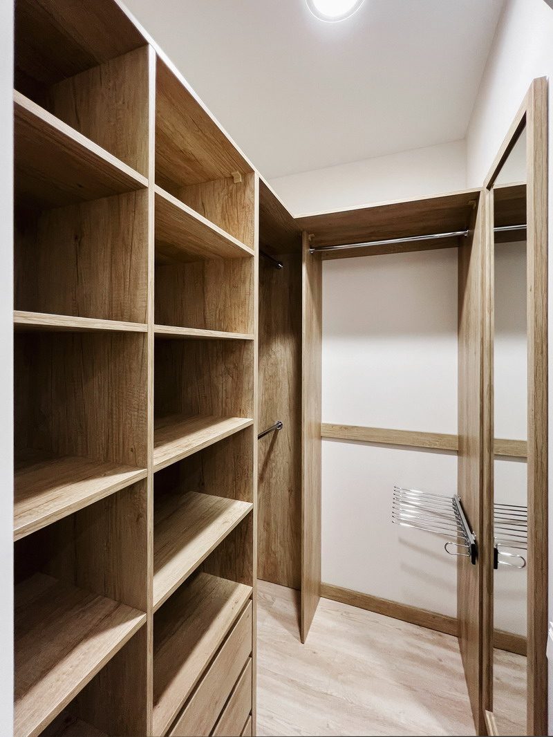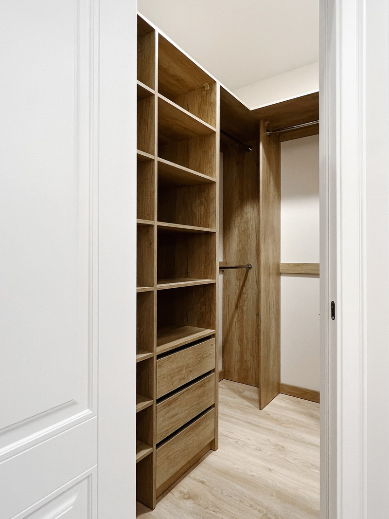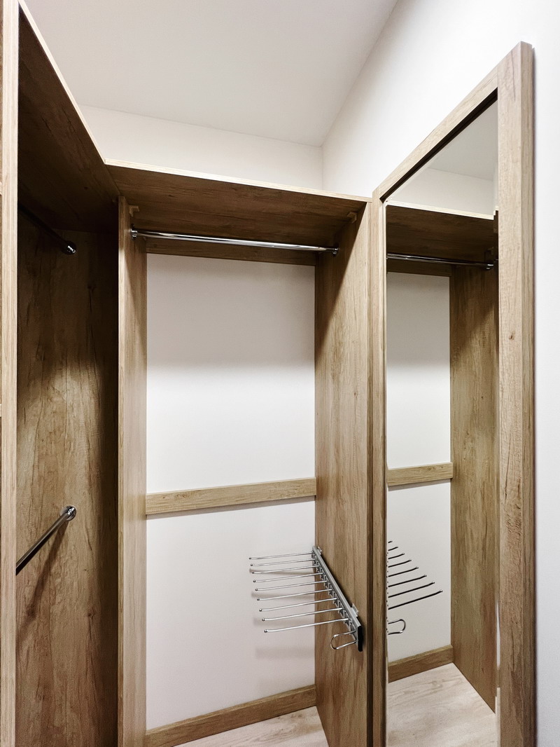 Решили проблему с вещами в других комнатах- освободили старые шкафы и подарили их. Теперь храним многое в этой прекрасной гардеробной!