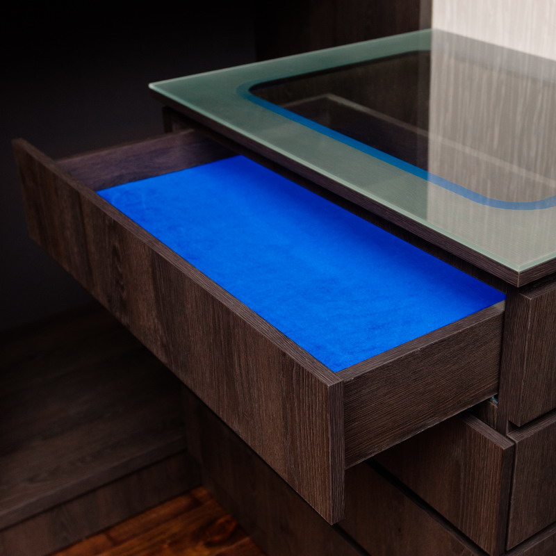 Не прогадали с выбором синего шкафа для гостиной. Существенно преобразил интерьер комнаты. Привезли в оговоренные сроки, с сборкой проблем не возникло. Умеют делать красиво и качественно.