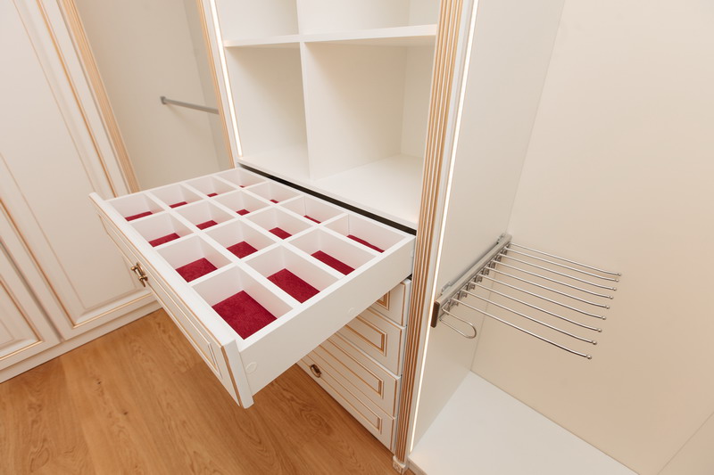 Эта гардеробная на заказ от производителя СПб создана для квартиры с открытой планировкой и воплощает идеальный баланс стиля и практичности.