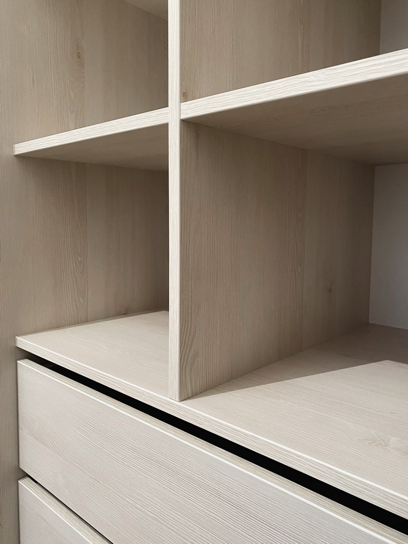 Мы приезжали в Спб всего лишь на месяц, поэтому мы попросили ребят уложиться в эти сроки, чтобы ехать домой со спокойным сердцем, что нашей дочери не придется жить в квартире с пустыми стенами и кучей вещей в середине комнаты)) И нам хотелось самим принять работу, не доверяя это совсем ещё юной дочери. Мы слабо верили в возможность построить два объекта (??) мебели за такие сжатые сроки, но они справились даже раньше, за 3 недели!