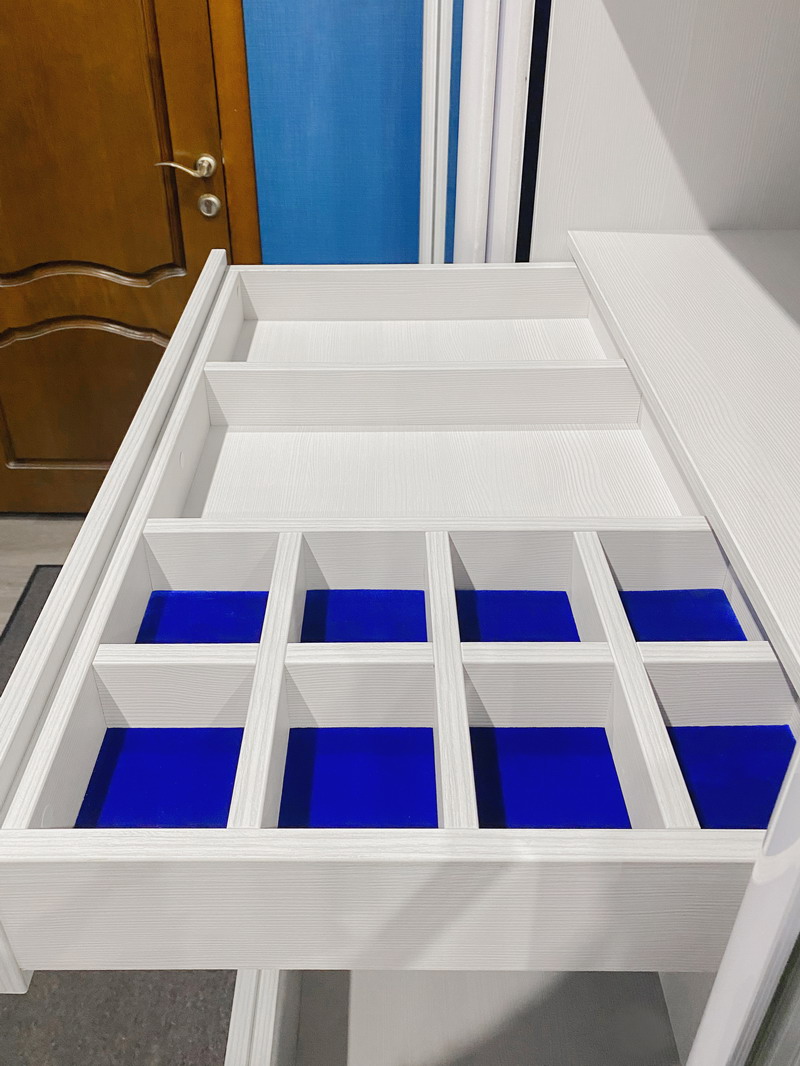 Не прогадали с выбором синего шкафа для гостиной. Существенно преобразил интерьер комнаты. Привезли в оговоренные сроки, с сборкой проблем не возникло. Умеют делать красиво и качественно.